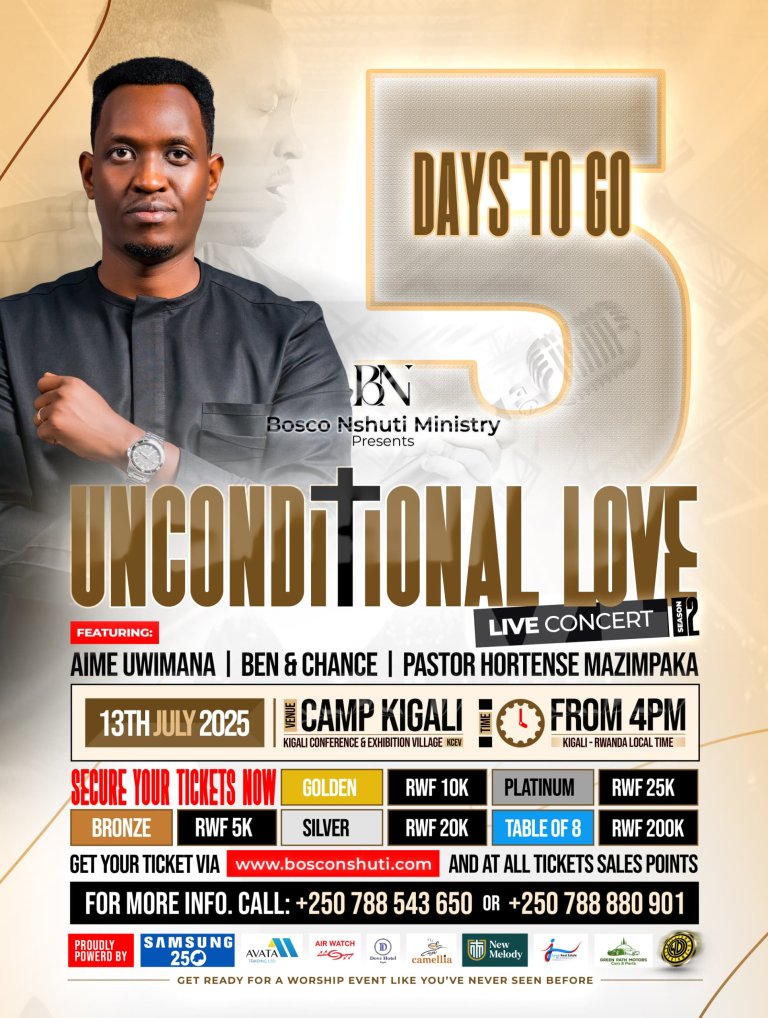 Mu kiganiro yagiranye n’itangazamakuru ku wa Kabiri, tariki ya 8 Nyakanga 2025, umuhanzi w’indirimbo zo kuramya no guhimbaza Imana, Bosco Nshuti, yagaragaje ko imyiteguro y’igitaramo cye gikomeye yise “Unconditional Love Live Concert” yarangiye.